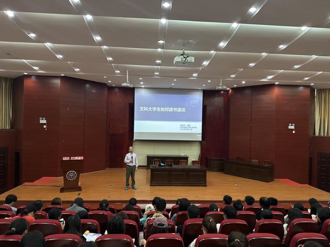 王璐璐書記借此向大一新生提出兩點希望:一是用好學校圖書館的資源,參與學院舉辦的讀書班;二是希望大一新生勤讀有字之書,得學問;善學無字之書,得真理。