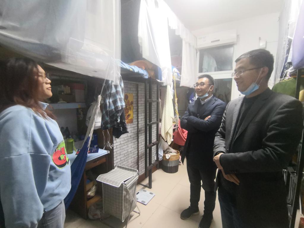 4月2日晚,院黨委書記李從浩、副書記黃承權、副院長陳祥軍及各年級輔導員、班導師等10余人,走訪了南區26棟女生宿舍和11 棟男生宿舍。各位老師深入所帶班級宿舍及其他年級宿舍,詳細了解并詢問同學們的學習生活情況、假期安排等,叮囑同學們,節假日期間要嚴格遵守學校疫情防控要求,盡量減少外出,注重個人防護,加強體育鍛煉,保持身體健康。同時,對同學們的學業及就業方面的困惑進行了細致的指導。