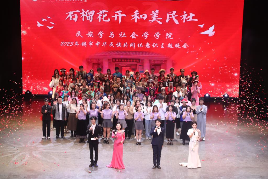 石榴花開青年路,石榴結籽心連心。12月3日晚,民族學與社會學學院首屆鑄牢中華民族共同體意識主題晚會在大禮堂舉行。學院領導、各年級師生,各兄弟學院團委老師、團學干部代表共享青春盛宴。