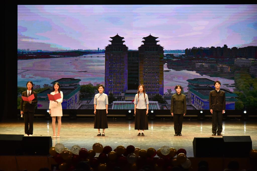 整場晚會以“石榴花開 南湖畔青年逐夢”“榴果飄香 新征程凝心聚力”“石榴結籽 雙塔下和合同心”三個篇章為線索展開,“我們想以石榴籽為紐帶,通過石榴花開、飄香、結籽的過程,和同學們一起感受中華民族文化‘各美其美、美美與共’的魅力。”學院學生會負責人董清平在介紹晚會時說道。