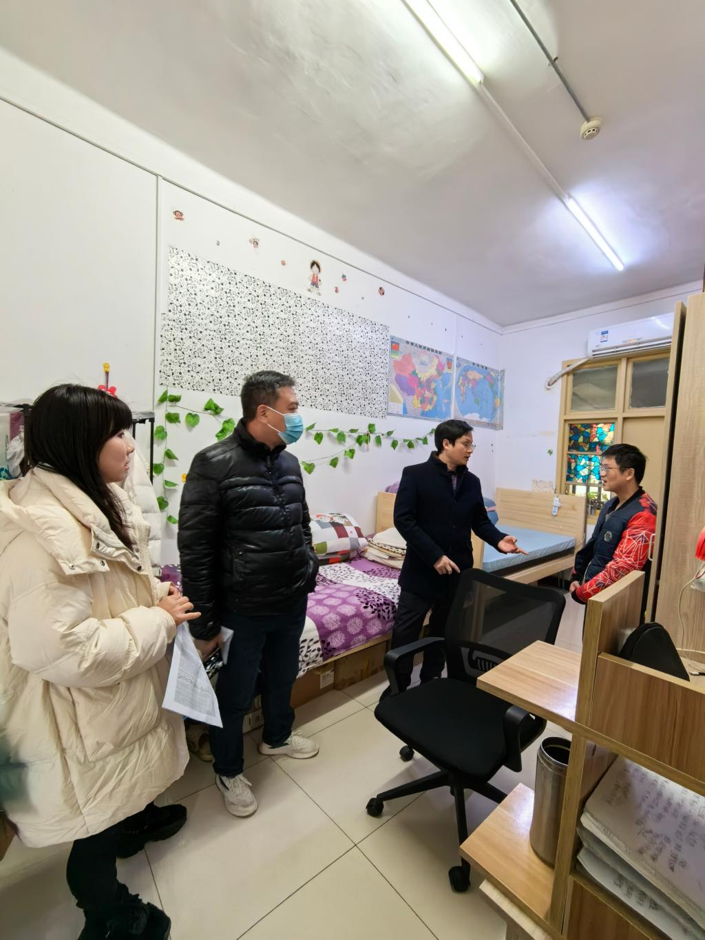 寒假伊始,學子們紛紛踏上返鄉旅程,與家人團聚。我院部分研究生因科研任務未按時回家,留校學習。為切實做好對學生的關心關懷,了解學生留校期間的學習和生活情況,1月18日下午,學院黨委書記錢文彬、分管學生工作副書記王璐璐、分管研究生教學副院長唐胡浩、研究生輔導員席鈺萍一行深入研究生寢室,了解學生的困難和需求。