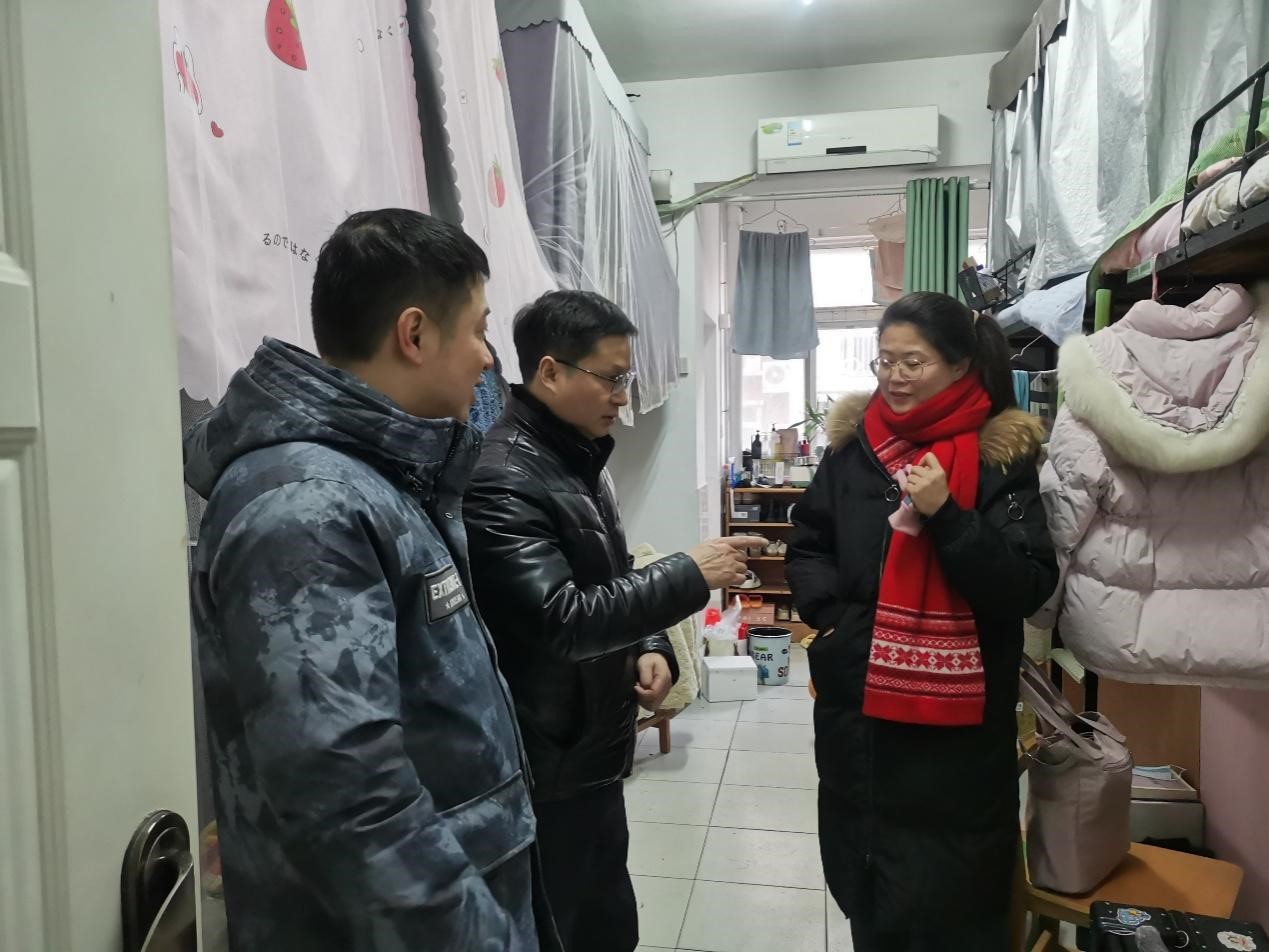 年關將至,為切實防范寒假期間學生寢室可能出現的各類安全隱患,確保學生人身財產安全。2024年1月25日,學院黨委書記錢文彬、學工辦主任袁磊、研究生輔導員席鈺萍一行再次走訪研究生宿舍,對留校學生所在寢室進行安全排查,并關心未返鄉學生的學習生活情況,重點強調了假期安全。