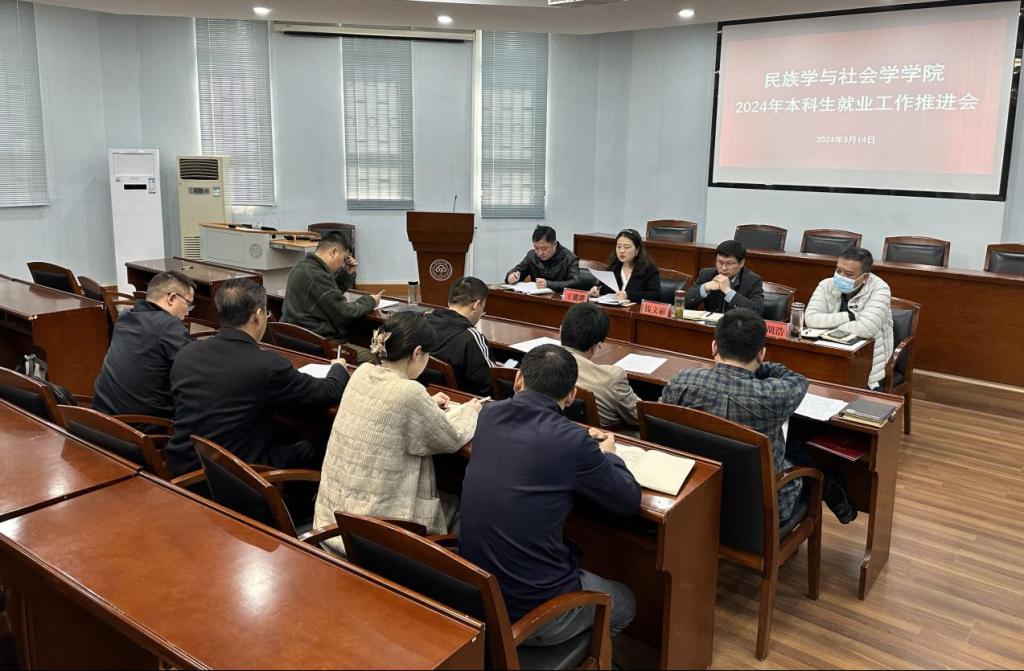 黨委副書記王璐璐解讀了2024年《民族學與社會學學院就業工作方案》,指出2023年就業工作存在的問題,明確2024年就業目標,并就2024年開展就業工作提出四點要求:一是要高度重視就業工作,切實增強責任感和使命感。二是要用心用情開展就業工作,抓住關鍵時間節點;三是要合理分配就業工作任務,各教研室主任需與班導師、教師密切協作,形成合力;同時,班導師要與學生干部、黨員保持緊密配合,共同推進就業工作的有序開展。四是要注重整體謀劃。要根據學院就業工作方案,明確工作目標和任務,細化工作措施,確保就業工作的有序進行。