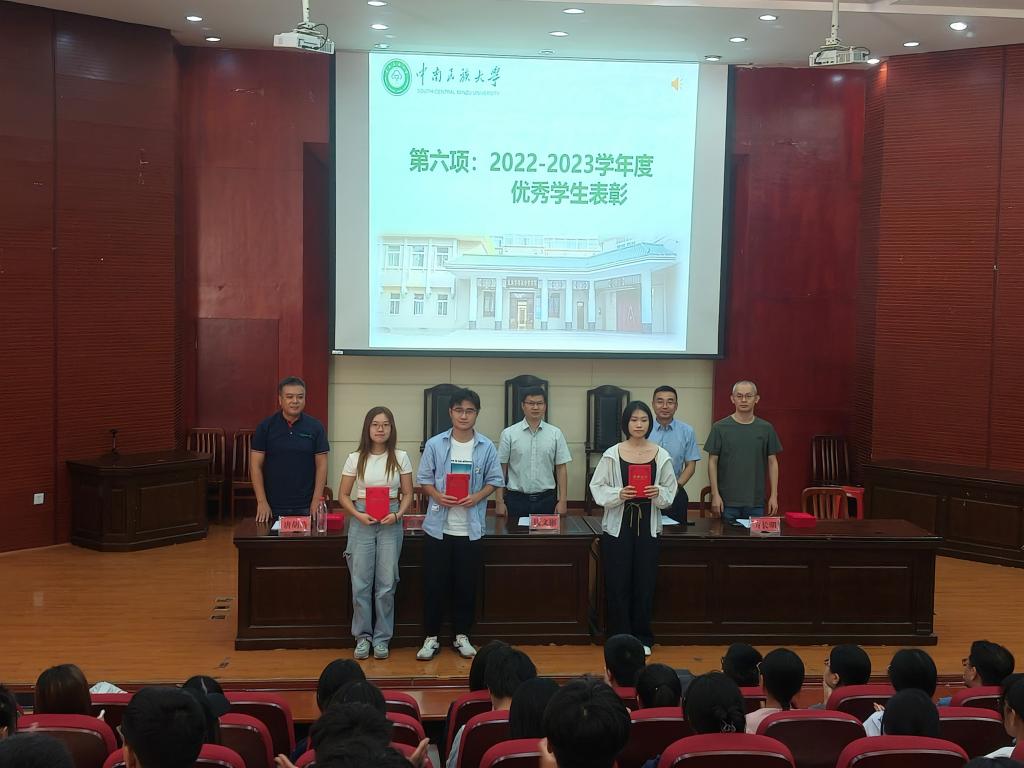 院黨委書記錢文彬宣讀《關(guān)于表彰2022-2023學(xué)年度“國家獎學(xué)金”獲得者的決定》,并為國家獎學(xué)金獲得者代表頒獎,激勵2024級新生向榜樣看齊。
