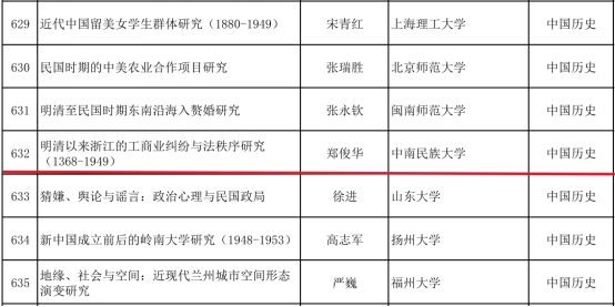 2025年1月17日,全國哲學社會科學工作辦公室正式公布2024年國家社會科學基金后期資助立項名單,我院鄭俊華老師申報的《明清以來浙江的工商業糾紛與法秩序研究 (1368-1949)》獲批立項。