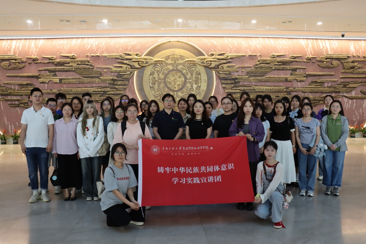 為深入學(xué)習(xí)貫徹黨的二十大精神,深化民族團(tuán)結(jié)進(jìn)步教育,5月7日下午,學(xué)院黨委書記錢文彬帶領(lǐng)黨委理論學(xué)習(xí)中心組成員,與本次展陳設(shè)計(jì)參與者李然教授及學(xué)院師生代表一同前往湖北省博物館,參觀“融在楚天——鑄牢中華民族共同體意識文物展”。此次活動由學(xué)院鑄牢中華民族共同體學(xué)習(xí)實(shí)踐宣講團(tuán)黨支部承辦,共有60余名師生代表參與,是一場別開生面的主題教育實(shí)踐活動。