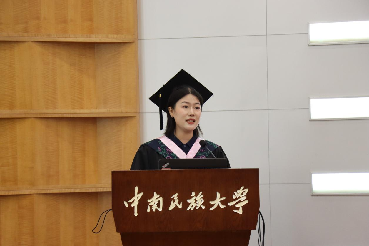 民族學(xué)博士生和社會學(xué)本科生韋淑荷作為畢業(yè)生代表發(fā)言,他們以自身成長軌跡詮釋民社學(xué)子擔(dān)當,通過城鄉(xiāng)田野實踐,學(xué)子親證各民族共創(chuàng)中華文明的歷史,淬煉家國情懷。面對中華民族偉大復(fù)興關(guān)鍵期,他們呼吁畢業(yè)生做中華民族共同體意識的建設(shè)者,將個人奮斗錨定國家發(fā)展需求,以專業(yè)智慧構(gòu)筑民族精神家園,以"強國有我"姿態(tài)投身中國式現(xiàn)代化建設(shè),用行動為民族復(fù)興貢獻青春。