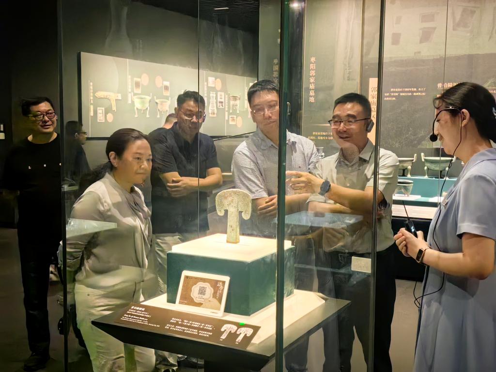 調(diào)研團一行首先參觀了襄陽市博物館《江山留勝跡——襄陽古代歷史文化展》,襄陽市博物館館長姚練介紹了博物館的基本陳列展覽、科研科普活動、文創(chuàng)產(chǎn)品開發(fā)等情況,分析了近年來博物館緊缺人才的需求狀況。
