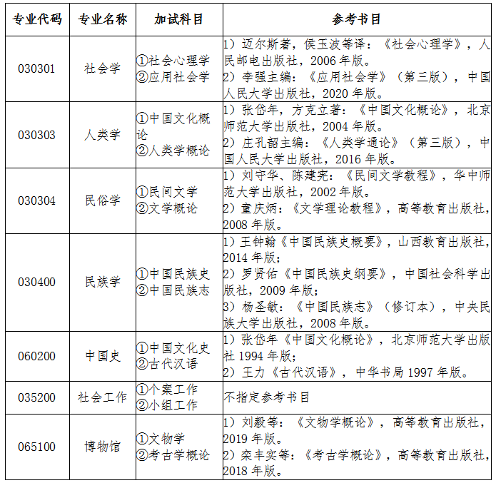 各學科(專業)復試科目及參考書目