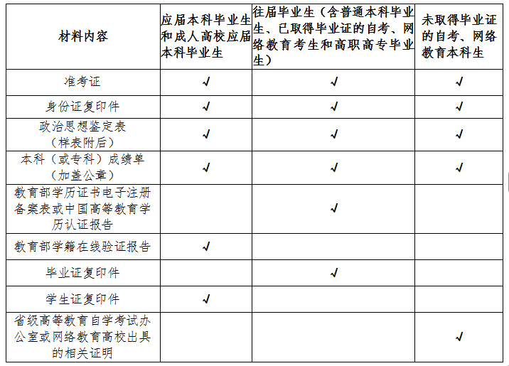 考生須按時提交準考證、身份證和畢業證書(2025年的應屆本科畢業生提供學生證)等相關材料復印件。學院在復試之前,對考生的報名資格進行嚴格審查,仔細核對。學院運用“人臉識別”“人證識別”等技術,并通過綜合比對“報考庫”“學籍學歷庫”“人口信息庫”“誠信檔案庫”等措施,加強對考生身份的審查核驗,嚴防復試“替考”。對弄虛作假、不符合教育部報考規定者,不予復試。對考生提交的學籍學歷認證報告由學院進行審查,并將審查結果簽字蓋章后交研招辦備案。不同類別的復試考生須按照如下表格所列要求提交資格審查材料。