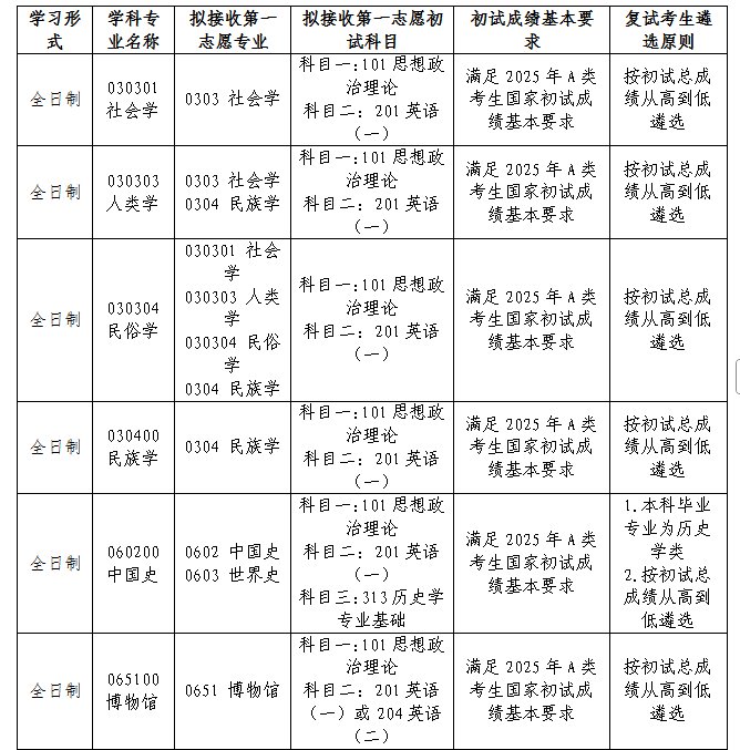 資格審查要求與一志愿復試一致,具體要求見我院網站主頁公布的《民族學與社會學學院2025年碩士研究生復試錄取實施細則》相關規定。