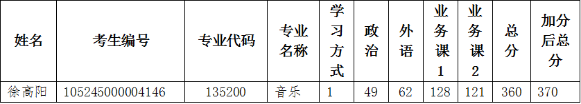 經(jīng)審核,以下一志愿考生符合“農(nóng)村義務(wù)教育階段學(xué)校教師特設(shè)崗位計劃”加分條件,初試總分加10分,加分后達(dá)到我院2025年碩士研究生音樂專業(yè)一志愿復(fù)試最低分?jǐn)?shù)線,現(xiàn)納入復(fù)試名單并予以公示: