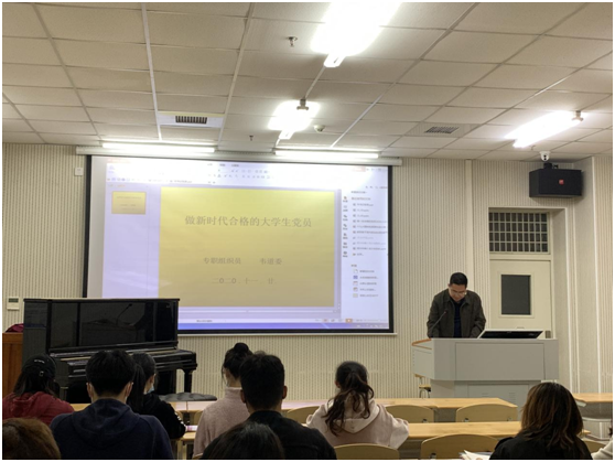 發布時間:2020年12月04日 00:00 瀏覽次數:11月20日晚上6點40,我院專職組織員韋道委為預備黨員培訓班學員帶來了以“做新時代合格的大學生黨員”為主題的講座。