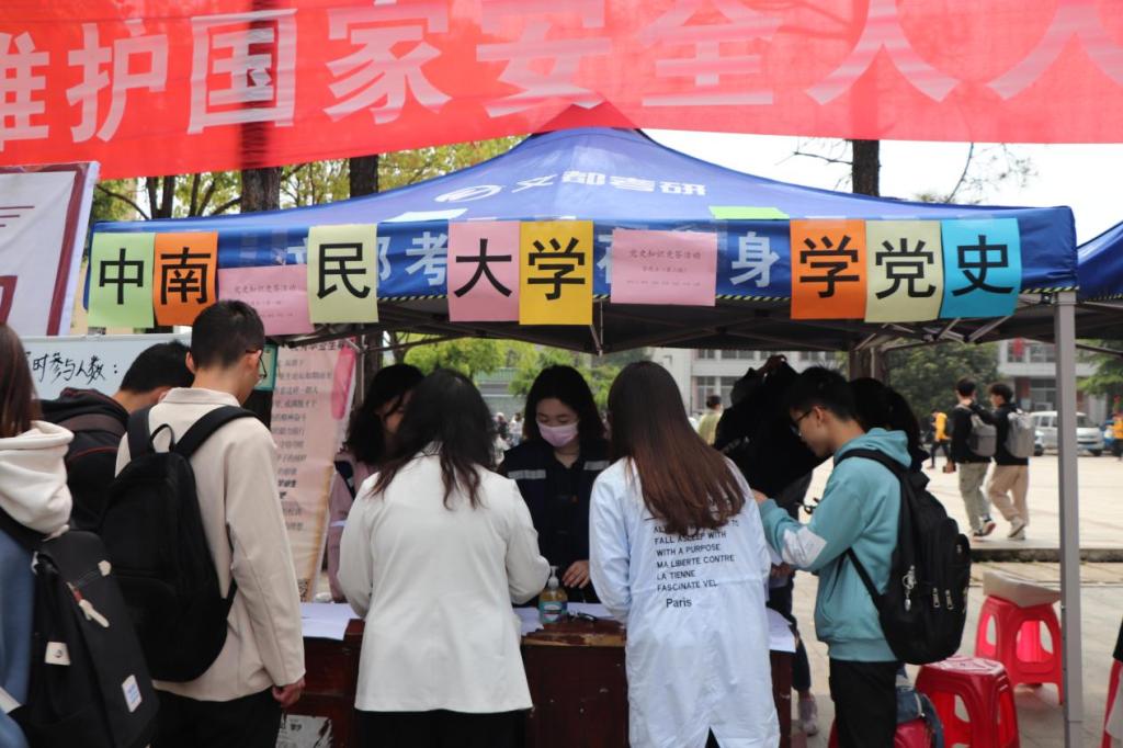 為慶祝中國共產(chǎn)黨成立100周年,學(xué)習(xí)貫徹習(xí)近平總書記在黨史學(xué)習(xí)教育動員大會上的重要講話精神,4月15日至16日,由校學(xué)生會主辦,法學(xué)院學(xué)生會、管理學(xué)院學(xué)生會承辦的“學(xué)黨史,正青春”黨史知識競答第一期活動于南區(qū)一、二食堂之間和北區(qū)天橋下擺臺處順利開展。