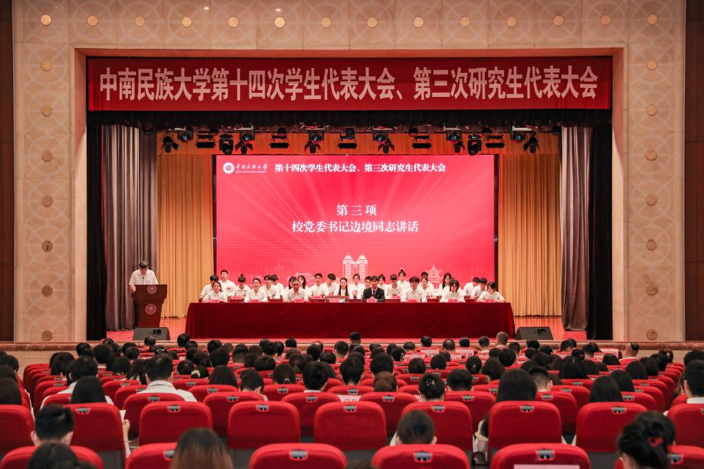 6月3日,中南民族大學(xué)第十四次學(xué)生代表大會(huì)、第三次研究生代表大會(huì)在學(xué)術(shù)會(huì)堂召開(kāi)。校黨委書(shū)記邊境,校黨委副書(shū)記、副校長(zhǎng)宋發(fā)軍,湖北省學(xué)聯(lián)駐會(huì)執(zhí)行主席張茂旭,學(xué)校有關(guān)職能部門(mén)負(fù)責(zé)人,各學(xué)院黨政負(fù)責(zé)同志、團(tuán)委負(fù)責(zé)同志出席開(kāi)幕會(huì)。校團(tuán)委書(shū)記徐其濤主持開(kāi)幕會(huì)。