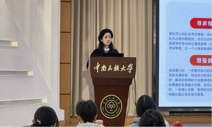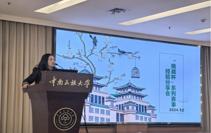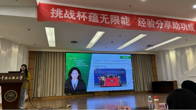 為進一步激發全校師生對創新實踐活動的熱情,總結2024年我校創新實踐方面取得的成績,12月7日,中南民族大學2024年“挑戰杯”系列賽事經驗分享會在潤良報告廳舉行。校團委副書記黃嵩、創新實踐部指導老師陳鵬冰,以及對“挑戰杯”賽事滿懷熱忱的同學們參加本次分享會。