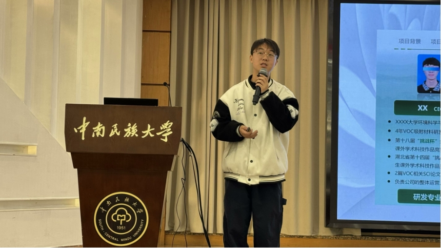 榮獲湖北省“挑戰杯”大學生課外學術科技作品競賽二等獎的藥學院研究生張丹,以自身經歷鼓勵同學們積極參與各類比賽。作為理科生,她從理科生的視角出發,提出要立足實際,以真實數據為支撐開展項目研究。在答辯環節,她建議同學們可將項目成品帶至現場,讓評委親身參與體驗,以此增強展示效果,吸引評委關注。