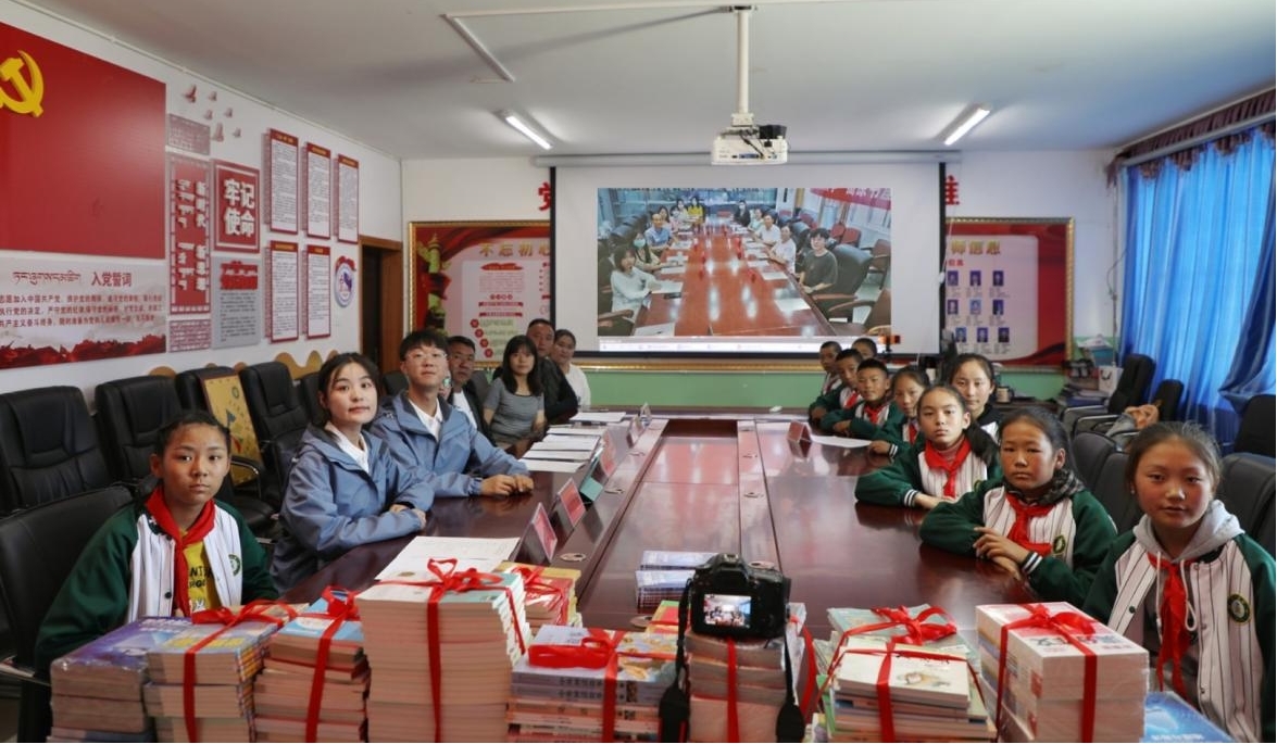 結巴鄉小學與我校師生代表云端相聚高原書屋捐贈儀式現場 索朗多吉 攝