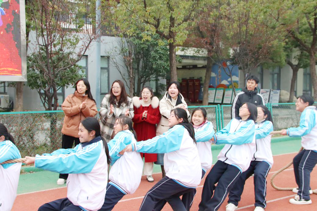 研支團成員為拔河學生吶喊助威 黃曉琪 攝