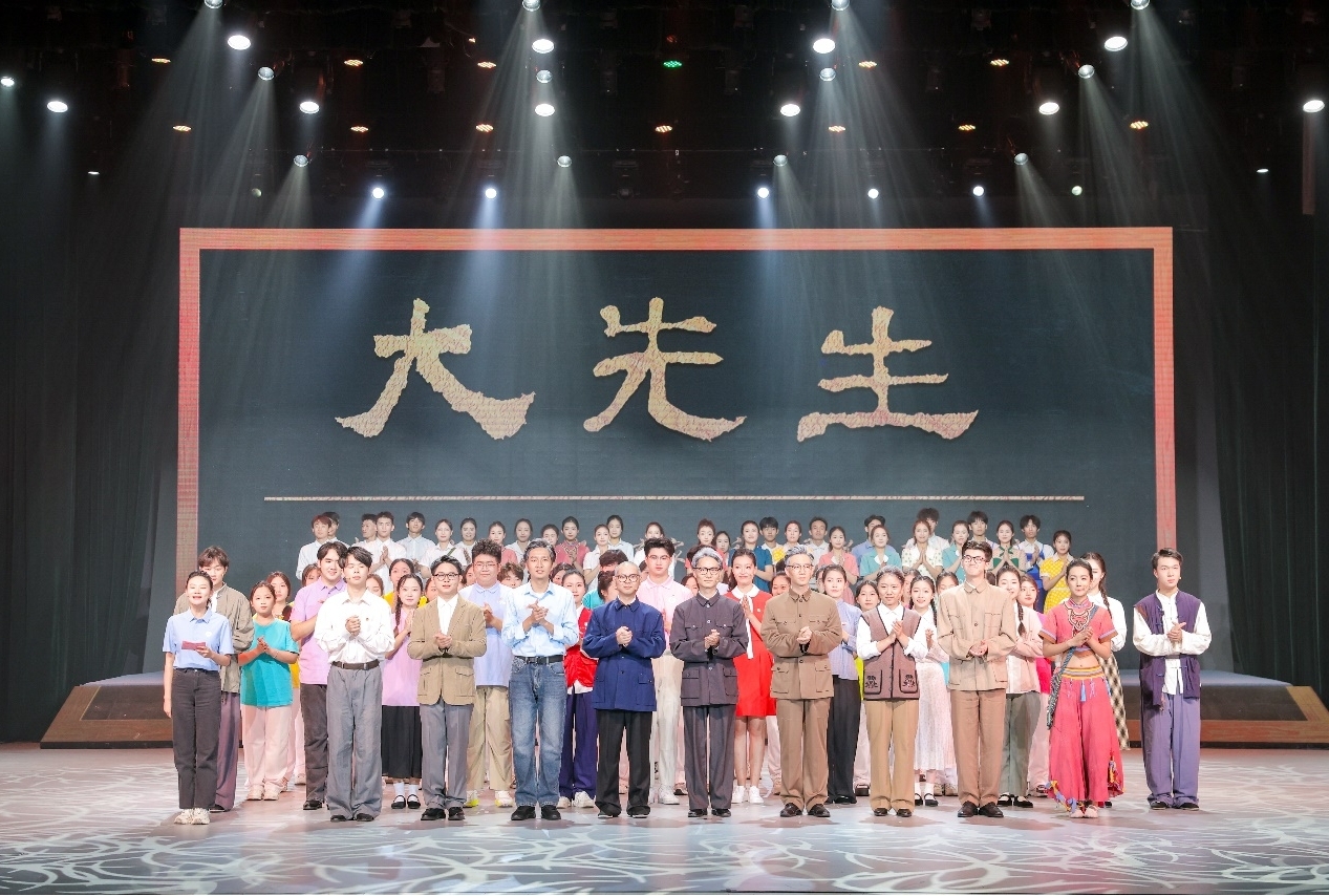 話劇《大先生》以學校辦學歷程為敘事主線,通過青年學子尋訪校史照片的線索,打破時空界限,讓學校三代教育者在同一命題下展開對話,通過白瑞西、吳澤霖、嚴學宭等創校先賢在民族危亡之際“教育救國”的拓荒實踐,柏貴喜教授等學者“教育報國”的田野堅守,以及臺下新時代師生“教育強國”的使命呼應,實現“角色—演員—觀眾”三重身份的融合升華。演出巧妙融入《西蘭卡普》《曙光》等特色歌舞片段,打造了一堂融校史傳承、思政教育與美育浸潤于一體的“大思政課”新范式,讓師生在藝術沉浸中觸摸教育家精神的溫度。