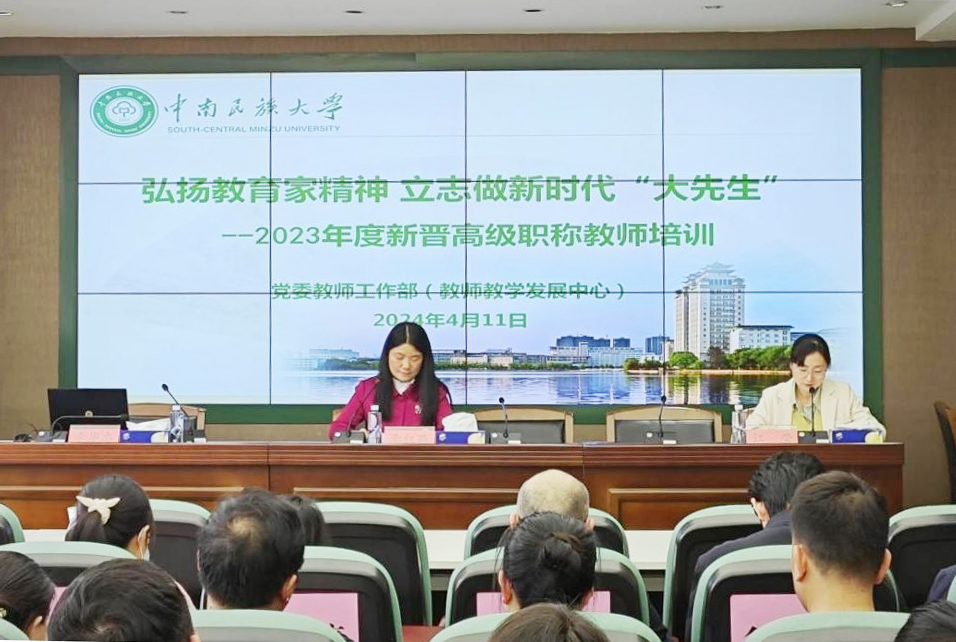 4月11日下午,學(xué)校在學(xué)術(shù)交流中心舉辦“弘揚教育家精神 立志做新時代‘大先生’”2023年度新晉高級職稱教師培訓(xùn)會。40余位新晉高級職稱教師參加了培訓(xùn),校黨委常委、副校長李紅燕出席會議。培訓(xùn)會由黨委教師工作部部長江瑩主持。