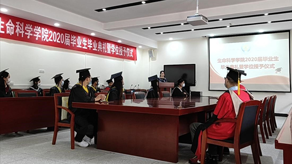 6月24日上午,在統籌做好常態化疫情防控的情況下,生科學院2020屆學生畢業典禮在學院會議室舉行。在校的部分2020屆本科、碩士畢業生,學院負責人、教師代表、輔導員老師等參加了畢業典禮。典禮由副院長譚艷平主持。