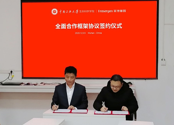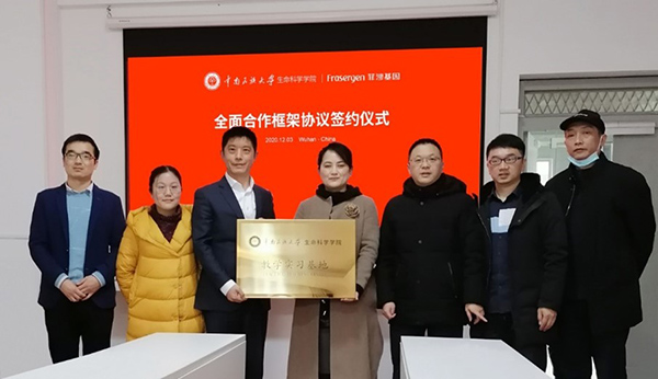 12月3日上午,生科學院與武漢菲沙基因信息有限公司舉行了全面合作框架協(xié)議簽約儀式。雙方將充分發(fā)揮各自的優(yōu)勢,探索學生校企聯(lián)合培養(yǎng)的新機制,進一步落實“產(chǎn)、學、研”結(jié)合,從機構(gòu)共建、聯(lián)合科研、人才培養(yǎng)與交流、產(chǎn)業(yè)轉(zhuǎn)化等方面進行深度合作。菲沙基因公司總經(jīng)理陳東生和相關(guān)工作人員,生科學院黨委書記謝嵐、院長覃瑞及生物信息學相關(guān)課題組成員參加了簽約儀式。