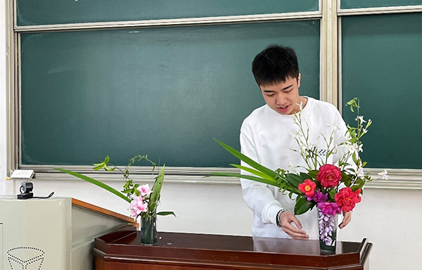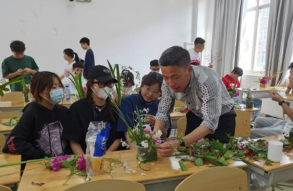 班導師組織學生在校內(nèi)開展了插花藝術(shù)實踐活動
