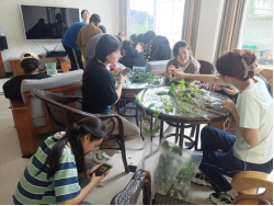 植物標(biāo)本:主要分為植物采集、標(biāo)本壓制烘干及制成上紙三個(gè)步驟。每組同學(xué)分工合作,對(duì)采集的植物標(biāo)本進(jìn)行編號(hào)、修剪、舒展枝葉、放進(jìn)吸水紙中,再用標(biāo)本夾壓制,使植物脫水干燥成形,直到植株和枝葉干燥成型。每名同學(xué)挑選一種植物再固定到白色臺(tái)紙,并粘貼植物詳細(xì)信息的標(biāo)簽。在完成作業(yè)的制作任務(wù)后,可以再選擇制作一份植物標(biāo)本作為紀(jì)念。
