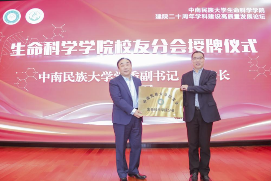 學(xué)校黨委副書記宋發(fā)軍代表學(xué)校向生命科學(xué)學(xué)院校友分會(huì)授牌。
