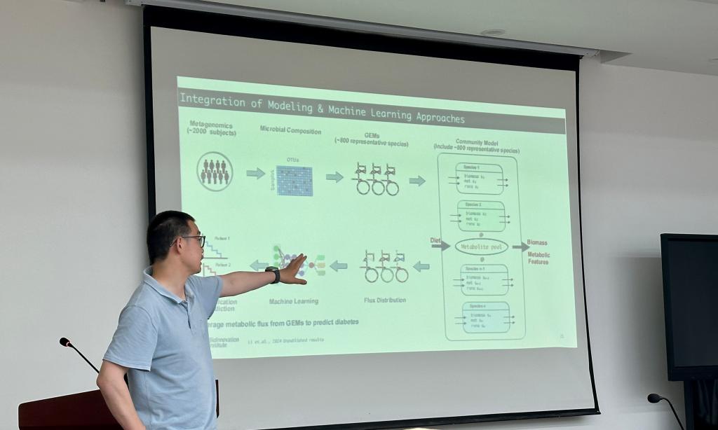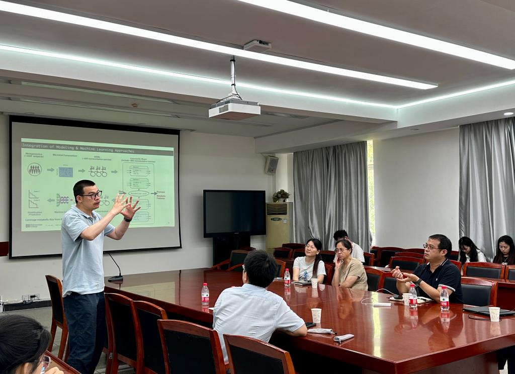 2024年7月26日下午,生命科學學院在中南民族大學8號樓206會議室舉辦“第十一期學術沙龍”活動。丹麥生物創新研究院戢博陽博士受邀主講,匯報主題為“Modeling the Human Gut Microbiome - Towards a Virtual Environment-Human-Microorganisms Model”。本次沙龍由學院副院長覃永華主持,學院在校部分教師和研究生聽取了報告并參與學術討論。