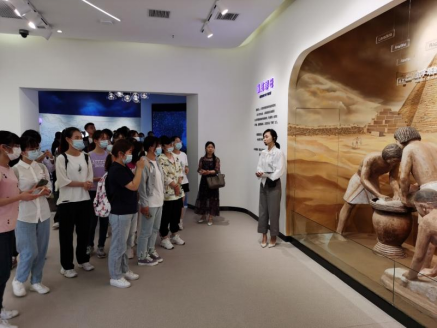 學生在安琪酵母股份有限公司新研發大樓參觀展廳