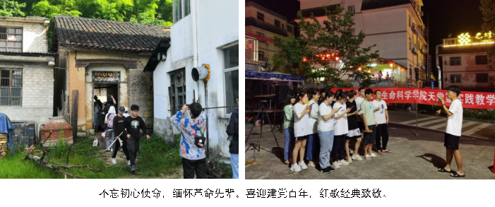 實(shí)習(xí)恰逢中國共產(chǎn)黨建黨100周年紀(jì)念,不忘初心使命,緬懷革命先輩,兩實(shí)習(xí)小分隊(duì)成立的臨時(shí)黨支部均開展多種形式的慶?;顒?dòng):吳家山實(shí)習(xí)師生組織參觀了劉鄧大軍天堂寨剿匪指揮部;天堂寨實(shí)習(xí)師生策劃組織了一場(chǎng)別開生面的“喜迎建黨百年,初心唱響紅歌”慶祝晚會(huì)。