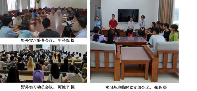 受新冠疫情的影響,本次野外實習(xí)存在2019和2020級學(xué)生實習(xí)時間撞車、帶隊老師需求量大和防疫工作難度大等難題。為了順利解決這些困難,學(xué)院黨委和行政領(lǐng)導(dǎo)班子利用實習(xí)籌備會、師生實習(xí)動員會和設(shè)立實習(xí)基地臨時黨支部等一系列措施,為野外實習(xí)的順利進行理清思路、排除困難。在實習(xí)過程中,臨時黨支部充分激發(fā)了學(xué)生黨員和入黨積極分子的積極性,發(fā)揮出很好的先鋒模范帶頭作用和良好的團隊合作精神。