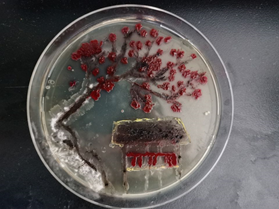 本屆比賽的主題為:科學探索“微”之美,青春獻禮二十大。參賽團隊依據大賽主題,通過微生物培養技術在培養皿上進行藝術創作,使在培養基上生長的、表達不同顏色的微生物組成各種各樣積極向上的正能量圖案;同時需對相關微生物的種類、生長情況、顏色情況等進行科學研究,以更好地利用微生物進行藝術創作,形成創意細菌畫作品。大賽主要考察參賽團隊的微生物基本知識、基本實驗操作能力和研究能力、藝術設計和創造能力等。
