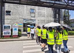 圖為勁牌公司相關(guān)負(fù)責(zé)人介紹企業(yè)文化、安全培訓(xùn)及參觀工廠內(nèi)的車間分布