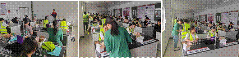 圖為同學(xué)們?cè)谶M(jìn)行白酒品評(píng)實(shí)習(xí)