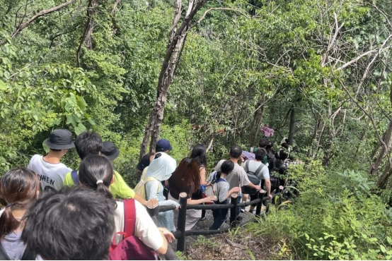 同學們徒步至龍潭河谷,考察龍潭河谷生態環境,進一步了解植物種類與生長情況。