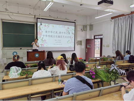 龔老師首先帶領同學們學習了插花藝術的歷史淵源、基本原理和技巧要點,引導他們進行觀察、思考和創作,將傳統文化之美融入到插花的實踐中。