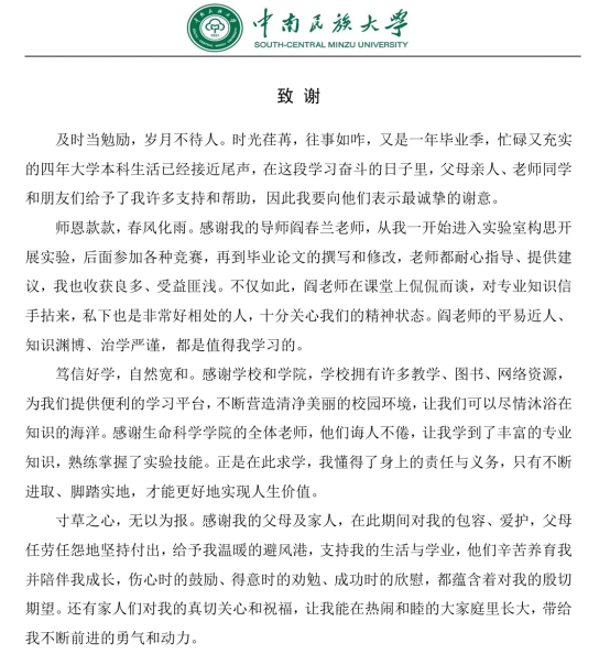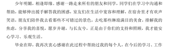 畢業在即,我再次衷心感謝在此過程中幫助過我的每個人,在今后的學習、工作和生活中,我會不忘親人的囑托,牢記師長的教誨,勇敢面對遇到的挫折和困難,繼續努力追求,不斷前行!最后祝愿大家都萬事順遂、喜樂安寧!