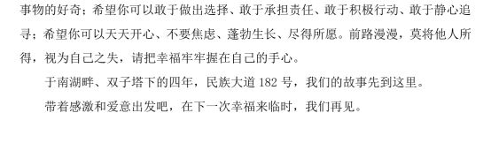 行文終有收筆時,少年不懼歲月長,彼方尚有榮光在;至此鮮花贈自己,縱馬踏花向自由。謹以此篇,獻給我十余載漫漫求學路,獻給我熱烈的二十一歲。