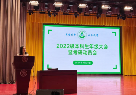 9月28日下午14:30,生命科學學院于學術會堂舉行了2022級年級大會暨考研動員會。會議旨在回顧上一學年的學業情況,強調近期發生的問題以及幫助大家明確考研目標,增強考研信心。生命科學學院學院黨委副書記張嫣、團委副書記兼22級輔導員陳琦、海文考研譚曉禹老師以及生命科學學院22級全體學生出席本次動員會。