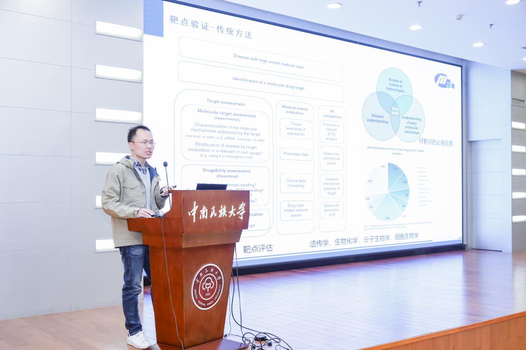 2008級校友、江蘇恒瑞醫藥股份有限公司開發負責人趙志龍作了題為《生物藥研發之路》的學術報告,介紹了靶點驗證與藥物發現、細胞株構建、細胞培養工藝開發、純化工藝開發、制劑工藝開發以及新型給藥裝置等生物藥的工藝開發和制造研究。