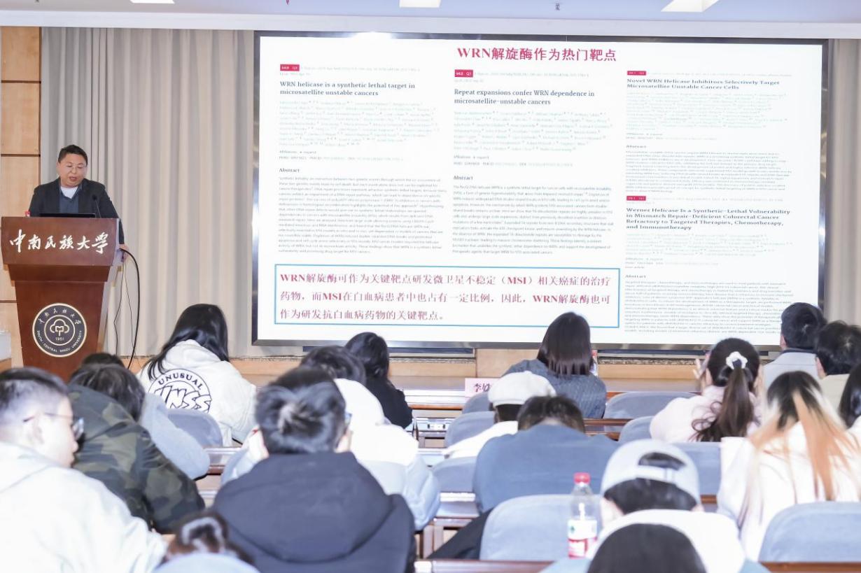 2004級校友、貴陽醫科大學藥用植物功效與利用國家重點實驗室研究員駱衡,作了題為《RecQ家族DNA解旋酶的生物學功能研究》的學術報告,就DNA解旋酶展開講述,發現了WRN解旋酶和REQL5解旋酶為抗癌藥物靶點。