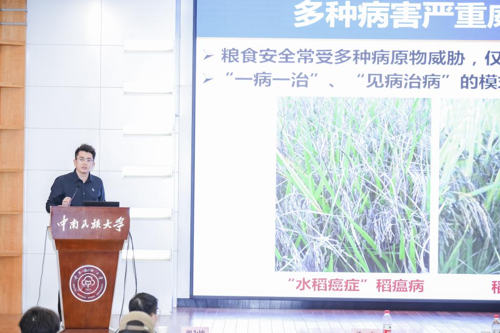 2012級校友、華南農業大學教授沙干作了題為《基因編輯磷脂酸代謝酶賦予水稻廣譜抗病性》的學術報告,介紹了基因編輯創制作物廣譜抗病基因研究策略并解析了對RBL1基因進行編輯優化創制RBL12基因以達到廣譜抗病、產量穩定及抗性優異的完整研究過程。