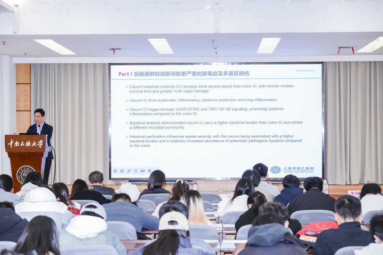 2004級校友、上海交通大學附屬醫院副研究員盧銀忠作了題為《膿毒癥腦病的病理生理學機制及防治研究》的學術報告,分享了膿毒癥腦病的病理生理學機制及防治研究。