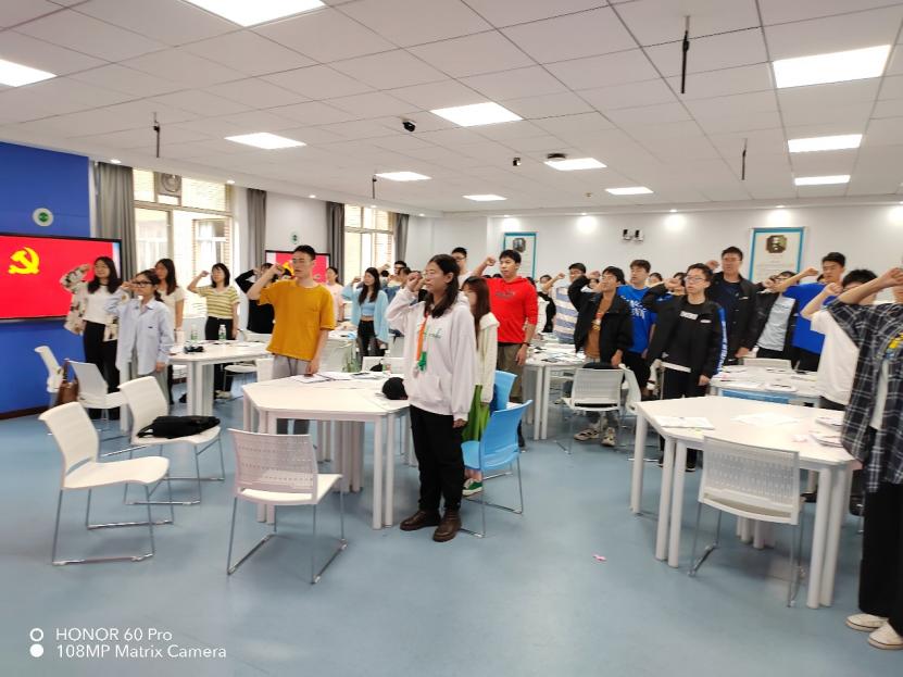 在方文杰的帶領(lǐng)下,全體畢業(yè)生黨員重溫了入黨誓詞。同學(xué)們高舉右拳,莊嚴(yán)宣誓,牢記黨的宗旨,表達(dá)自己將以忠貞不渝的精神、艱苦卓絕的品質(zhì),時(shí)刻為黨為人民為國家奉獻(xiàn)一切的決心,表達(dá)了畢業(yè)生黨員對(duì)黨無限忠誠和熱愛之情,也進(jìn)一步激勵(lì)和督促大家,自覺聽從黨和人民的召喚,用實(shí)際行動(dòng)踐行黨員承諾。