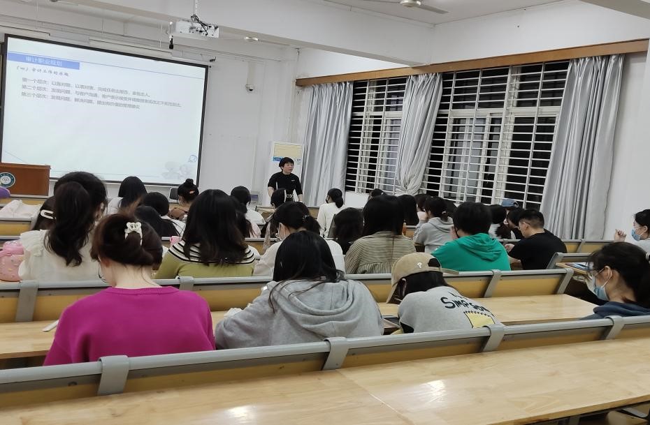 陳莉老師用通俗易懂、風(fēng)趣幽默的語言讓同學(xué)們了解了審計(jì)實(shí)務(wù)工作的程序、重點(diǎn)與注意事項(xiàng),為同學(xué)們后續(xù)的審計(jì)學(xué)習(xí)與審計(jì)方向就業(yè)提供了很多寶貴經(jīng)驗(yàn)。