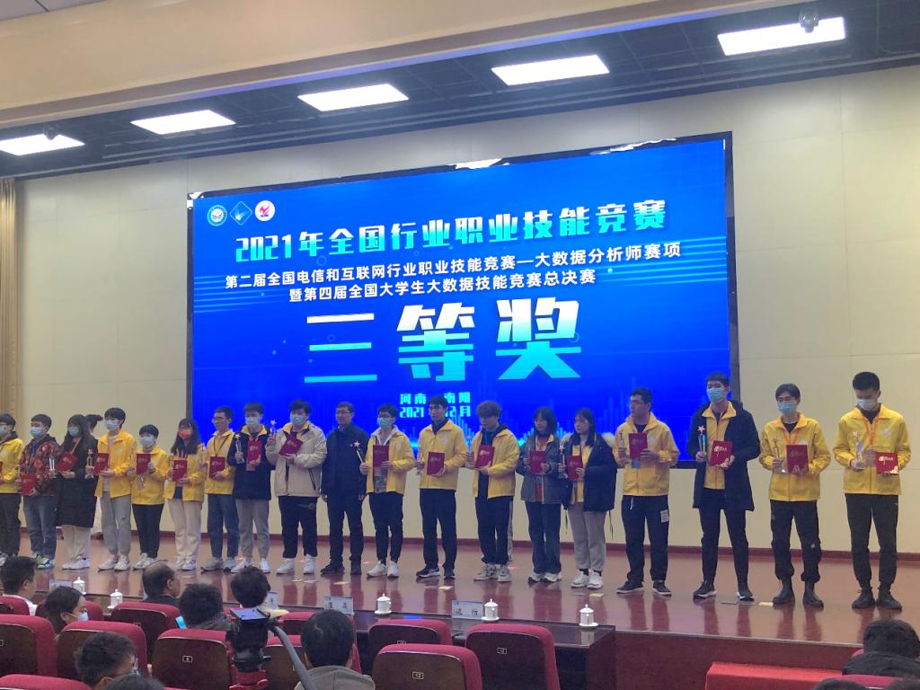 2021年12月18日星期四,第二屆“全國電信和互聯網行業職業技能競賽——大數據分析師賽項暨第四屆全國大學生大數據技能競賽”總決賽在河南南陽河南工業職業技術學院成功舉行,我院2019級“商務大數據分析與應用”實驗班由劉啟川、付雪晴、費嘉欣三位同學組成的管院大數據Ⅰ隊和張時琪、張慶俐、姜佳慧三位同學組成的Team Grils團隊,在楊單老師的指導下,繼11月突出重圍闖入全國總決賽后,在總決賽中表現優異,最終管院大數據Ⅰ隊取得本科組全國三等獎,Team Grils團隊取得全國優勝獎。