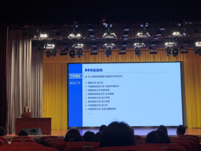 為貫徹落實《管理學院2023級大類招生專業分流實施方案》,扎實做好學院專業建設,深化學生對各專業特色的認識,推動專業分流工作有序開展,4月13日下午,管理學院于學術會堂召開了2023級財會專業分流交流會。2023級全體工商管理類專業學生參會,會議由2023級輔導員李丹主持。